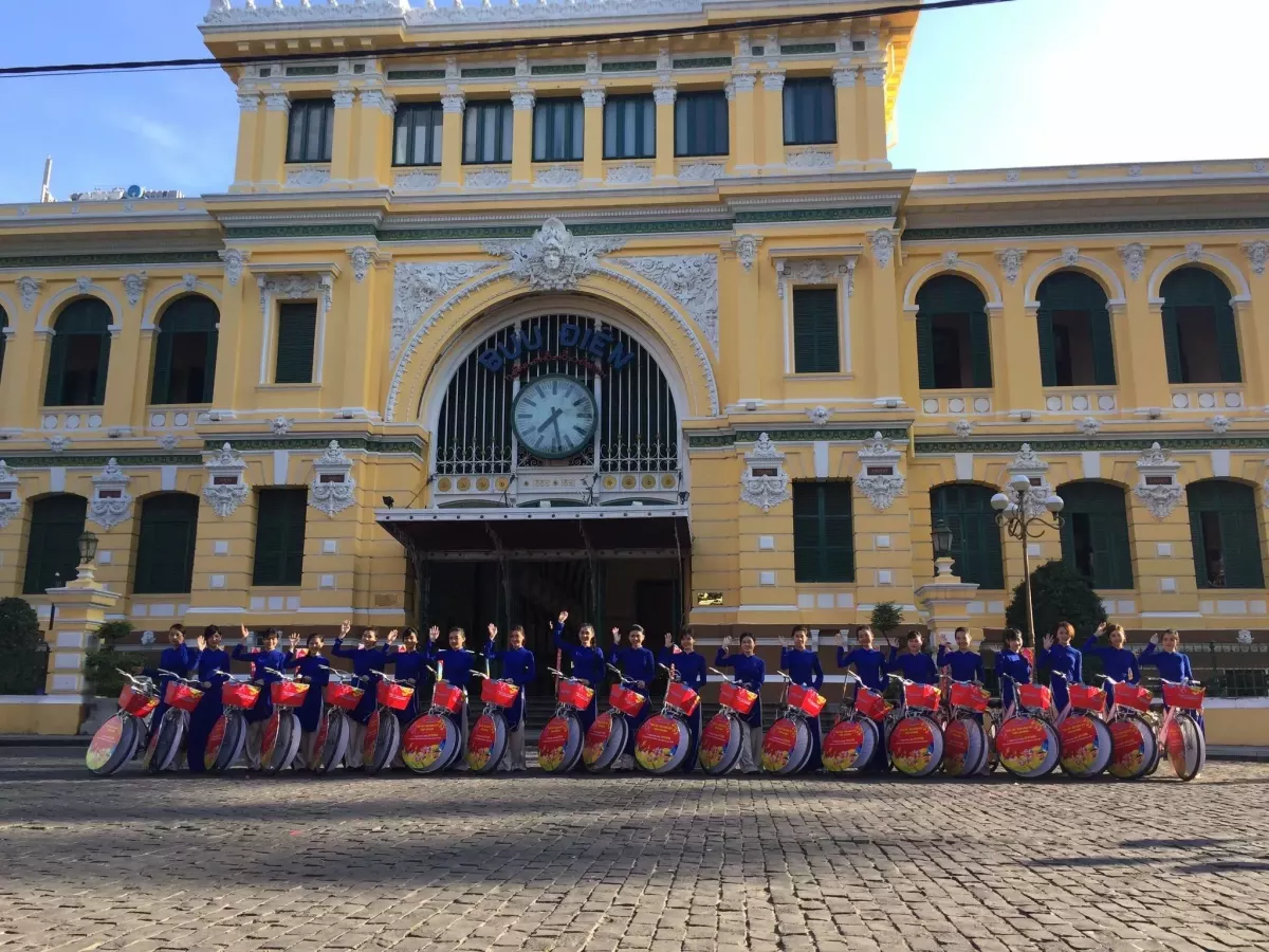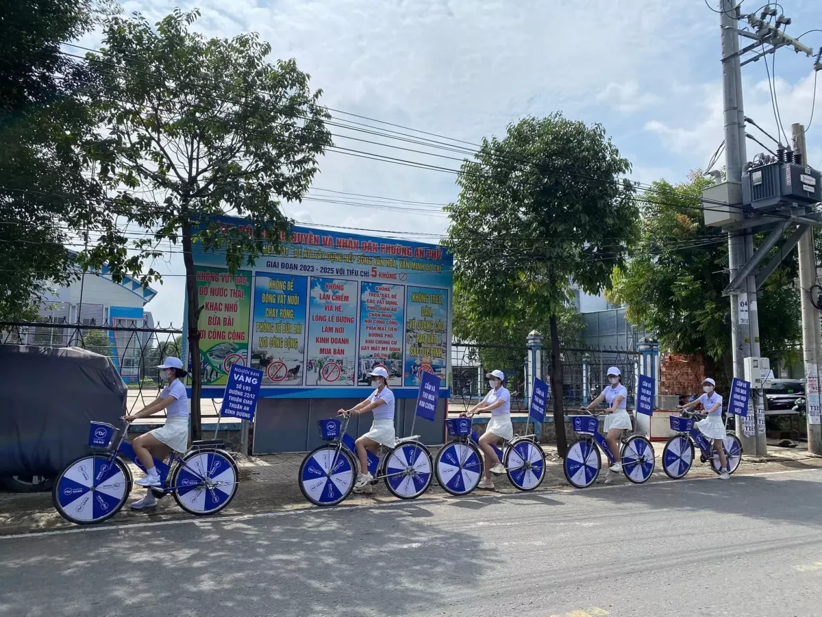 - Tập trung tại điểm xuất phát, trang trí xe đạp với logo và hình ảnh thương hiệu.